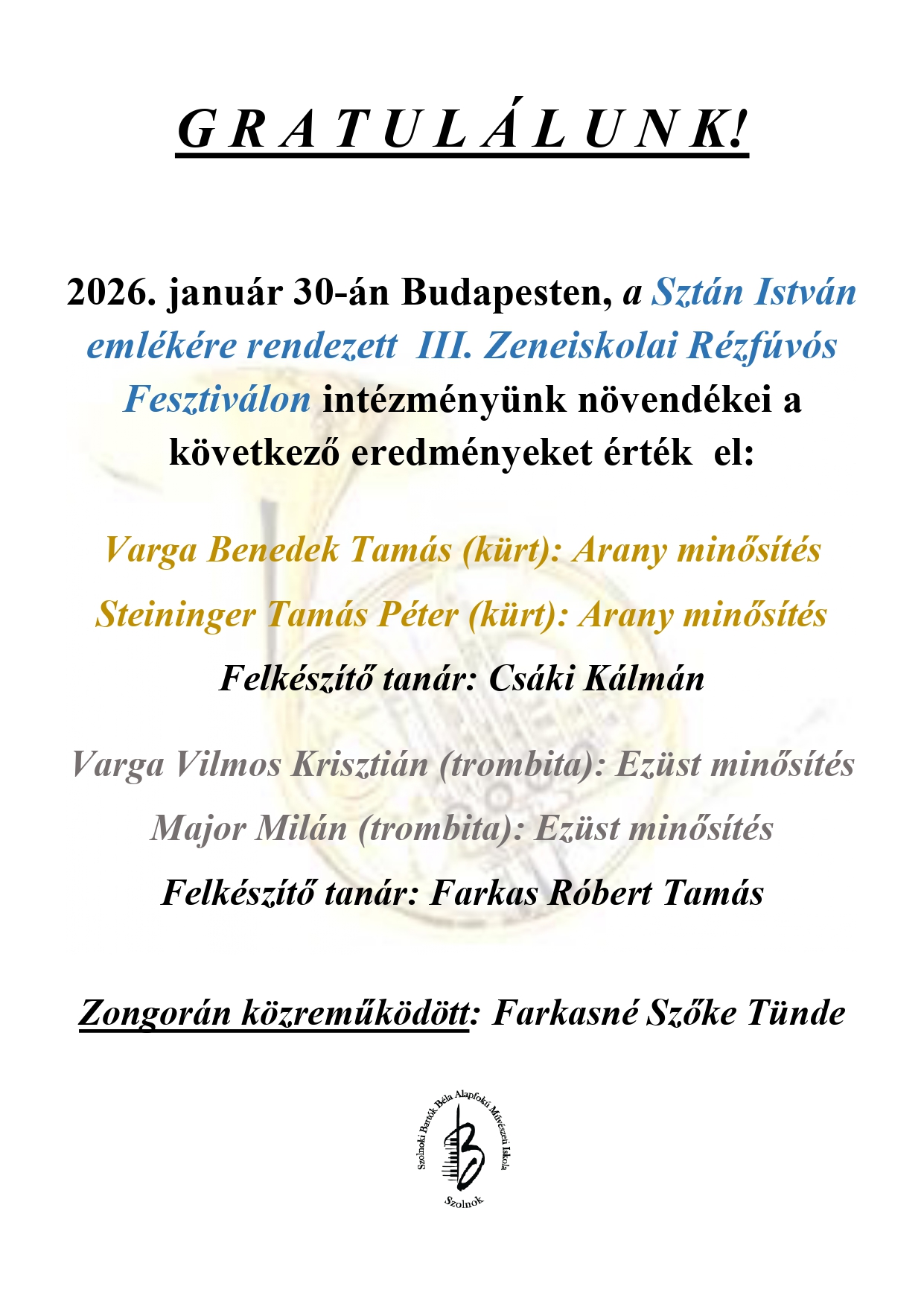 Sztán István III. Zeneiskolai Rézfúvós Fesztivál